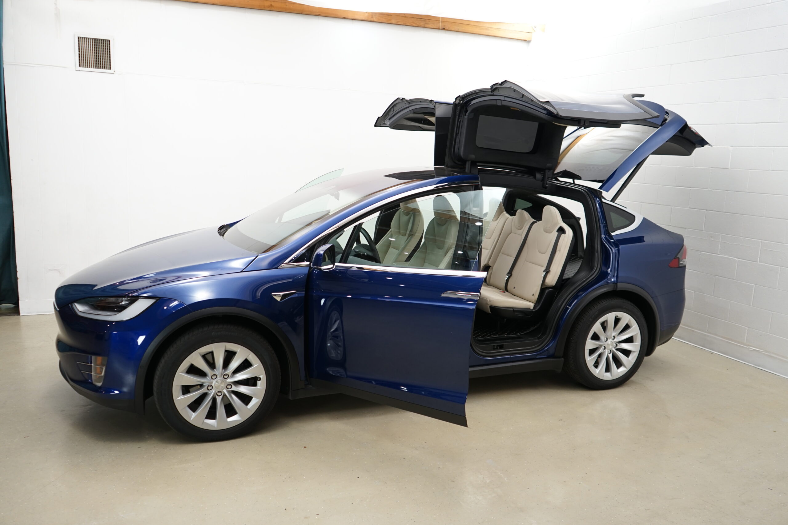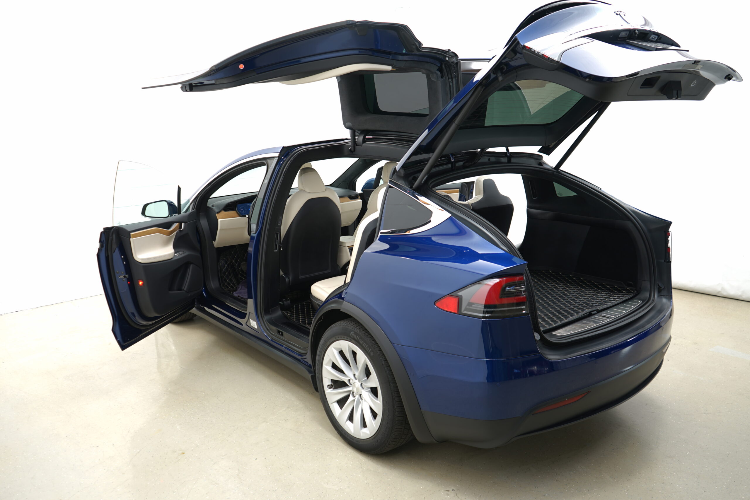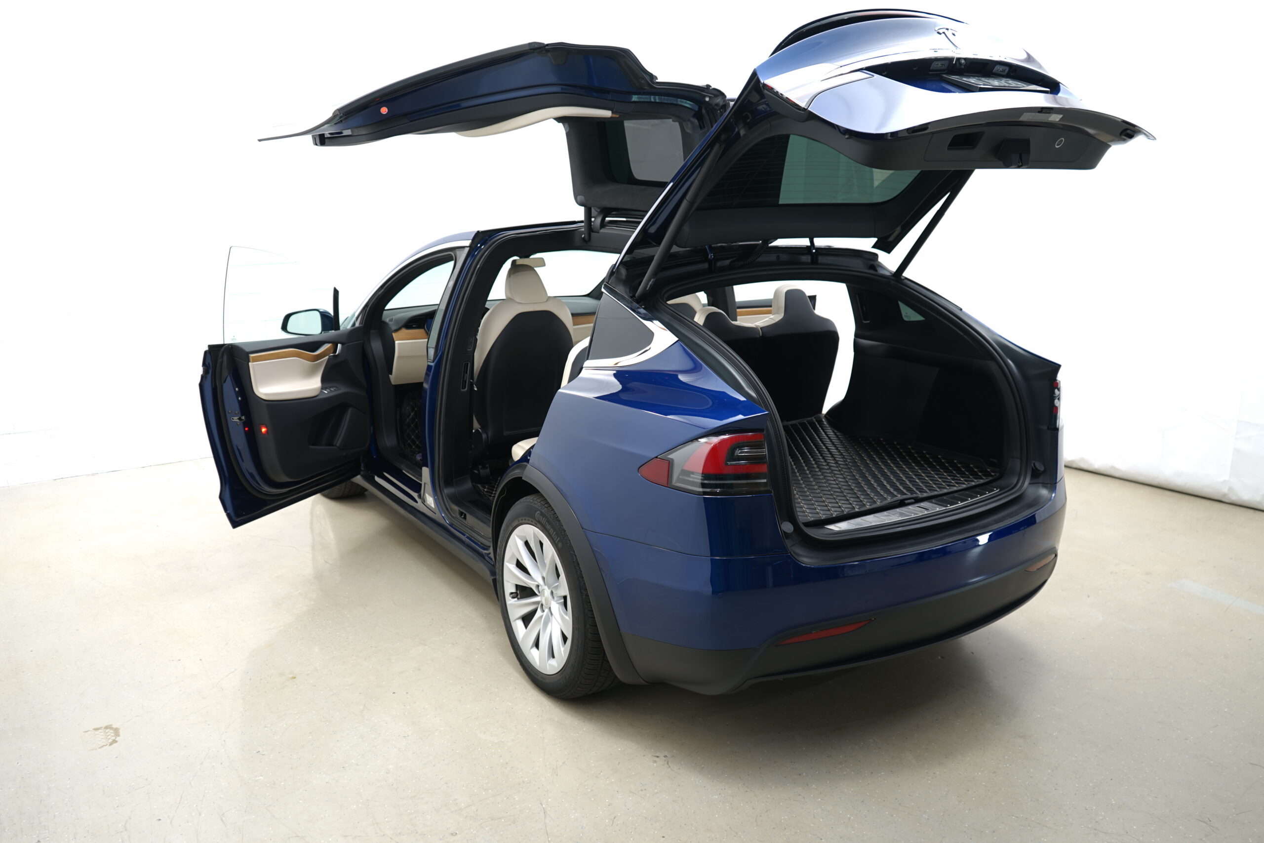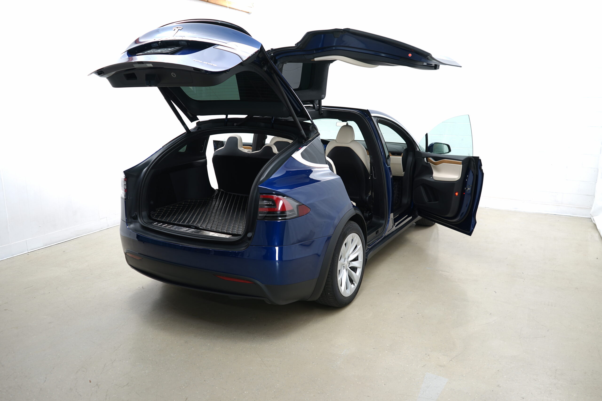 This 2021 Tesla Model X with Long Range Plus includes a 7-seater interior, was used this past year at our client’s winter home in Palm Springs, CA. The color is ‘Deep Blue Metallic’ and the interior package is the cream with oak wood décor. This car is essentially like new. Given the Premium Upgrades Package upon purchase, the Tesla comes with autopilot drive and includes the Full Self-Driving software. As standard for the Tesla Model X, it includes 2 electric motors with regenerative braking and microprocessor-controlled Lithium-Ion batteries.
