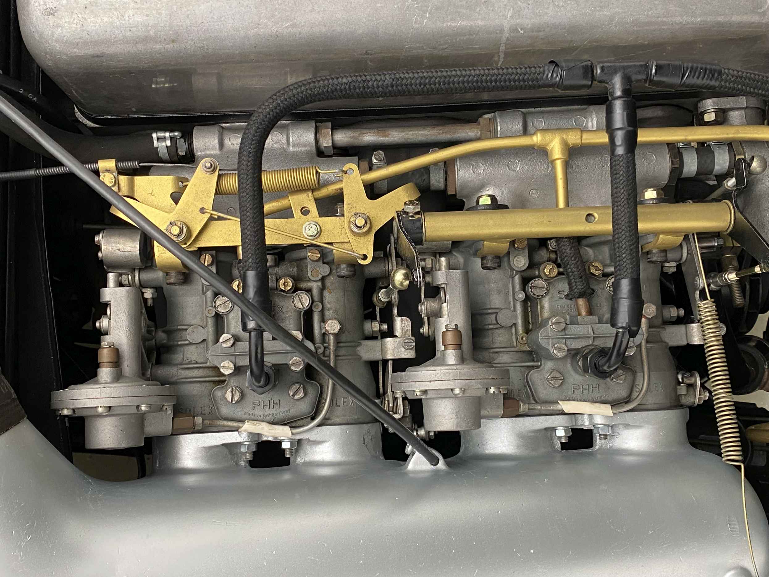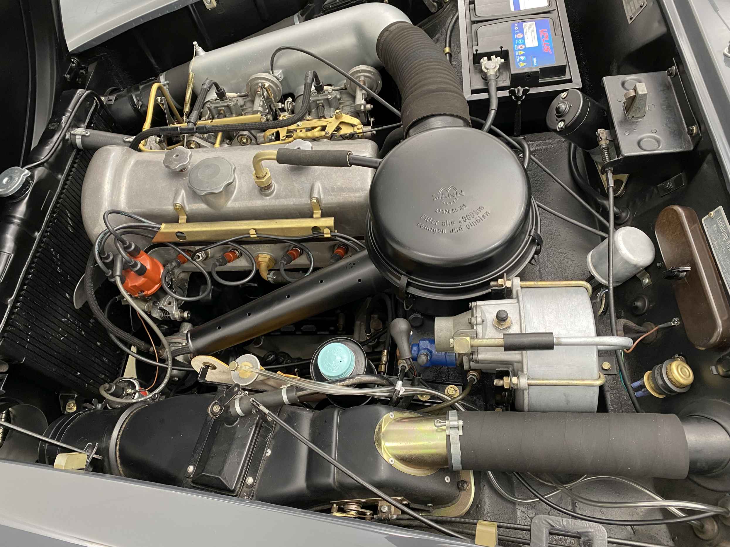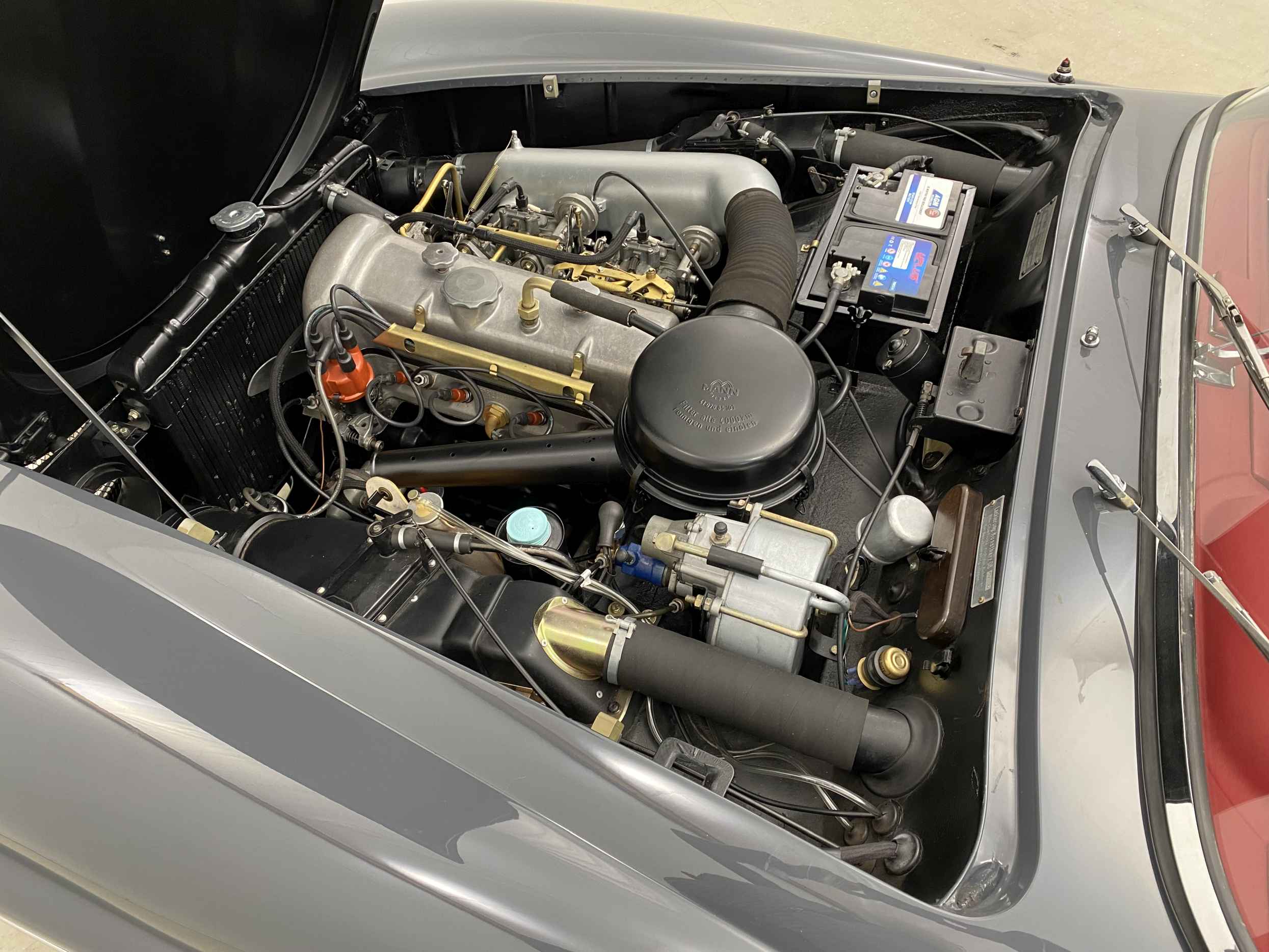 All aspects of this car have been rebuilt or renewed from the engine to the stainless-steel exhaust. From top to bottom and in and out, from the rich oldtimer leather to the lustrous and deep graphite gray exterior finish, virtually everything has been renewed.